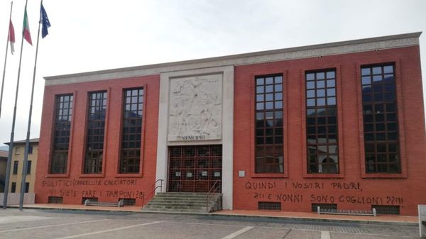 Ignoti nella notte hanno imbrattato il comune di Nembro con una scritta polemica sui tamponi.