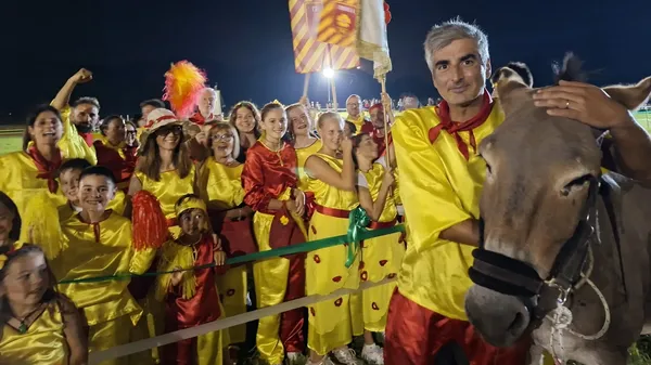 IL PALIO. Vittoria attesa per la contrada della Primula (giallo e rosso) che sabato 9 agosto ha vinto il 49° Palio degli Asini di San Lorenzo di Rovetta davanti alle migliaia di spettatori.