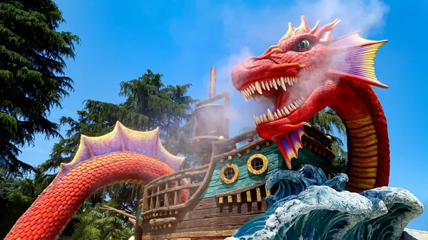 TEMPO LIBERO. Il parco di Capriate inaugura la nuova area giochi acquatica per bambini, protetta da un gigantesco drago: comprende una piazza, una fontana e un ristorante. Tra le novità anche Super Mario.