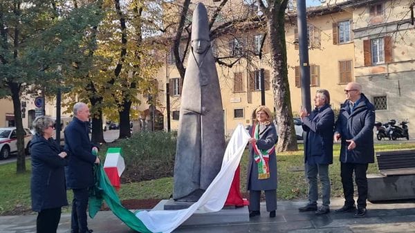 LA DONAZIONE. In piazza Carrara a Bergamo, svelata la monumentale scultura donata da Fondazione Banca Popolare di Bergamo.