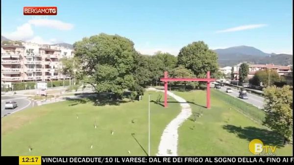 È una delle opere di Francesco Lussana, artista di Torre Boldone, che cerca di portare fuori dai capannoni i rumori, il sudore e il lavoro della fabbrica. Le sue opere d’arte mettono in scena i processi produttivi.