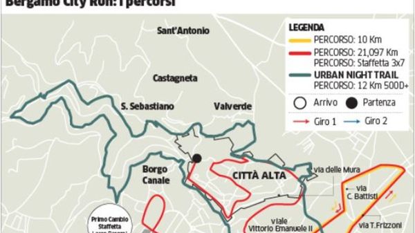 Nel weekend la settima edizione della Bergamo City Run, sabato 2 febbraio si parte con la Urban Night Trail, domenica la mezza dei Mille, attesi tremila concorrenti. La mappa e le strade chiuse.