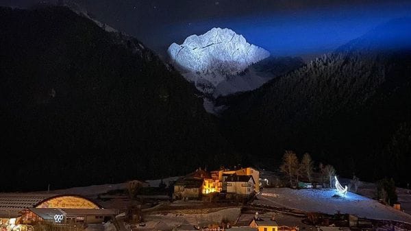 Il Pizzo Camino illuminato incanta la Val di Scalve