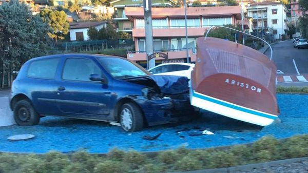 Ricordate l’auto finita contro la riproduzione di un motoscafo «Riva» a Sarnico? Il curioso incidente è avvenuto lo scorso 1 marzo all’alba.