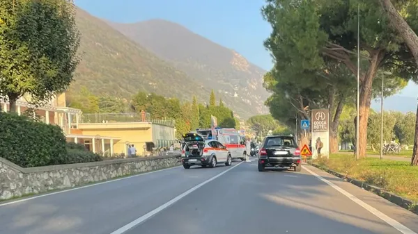 L’INCIDENTE. Alle 14,40 di lunedì 9 dicembre sulla strada del lungolago. Ferita anche una donna di 43 anni di Lovere, illeso il figlio di un anno.