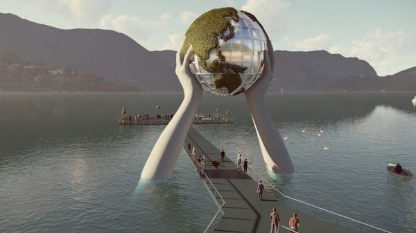 Dopo la passerella di Christo, un’altra opera «galleggerà» sul lago d’Iseo, ancora sulla sponda bresciana: le celebri «mani» di Lorenzo Quinn si innalzeranno dalle acque del Sebino, di fronte alle ex Palafitte di Sulzano, reggendo un Globo su cui saranno rappresentanti gli oceani e i continenti, ciascuno di loro caratterizzato da una rigogliosa vegetazione.