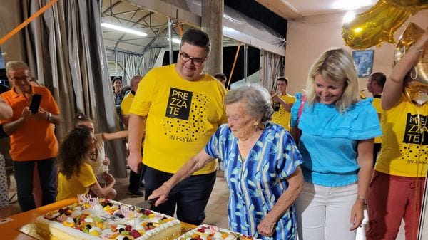 Prezzate di Mapello. Dopo aver preparato 20 litri del piatto tipico, la sorpresa: gli auguri di sindaca e parroco, la torta e il suono della fanfara.