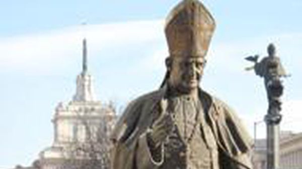 Emanuele Roncalli Bambini ortodossi a catechismo nella chiesa cattolica, all’ombra della statua di Papa Giovanni. Capita nella capitale bulgara, Sofia, dove un tempo monsignor Angelo Giuseppe Roncalli -si fece voler bene dai bulgari.