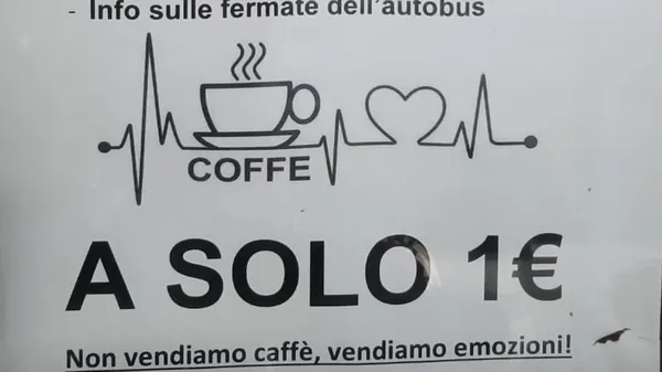 LA STORIA. «Non vendiamo caffè, vendiamo emozioni». Offerta del giorno: caffè ad un euro compreso bicchiere d’acqua, zucchero senza limiti, tovaglioli, cucchiaio e piattino, giornali del giorno, chiacchierata con supporto psichiatrico e appoggio morale, bagno, info sul meteo e sulle fermate dell’autobus.
