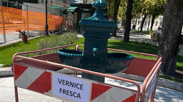 Il cantiere sul Sentierone. La storica fontanella era stata dipinta di grigio, scatenando le reazioni dei bergamaschi su web e social. L’assessore Valesini: riposizionata e restaurata, il tema del colore è secondario ma sarà ripitturata.