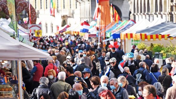 Il sole e una gran folla. Sul Sentierone 100 espositori da mezza Europa sino a domenica per i Mercatanti. Obbligo di Green pass per accedere e mascherina, area food «sorvegliata».