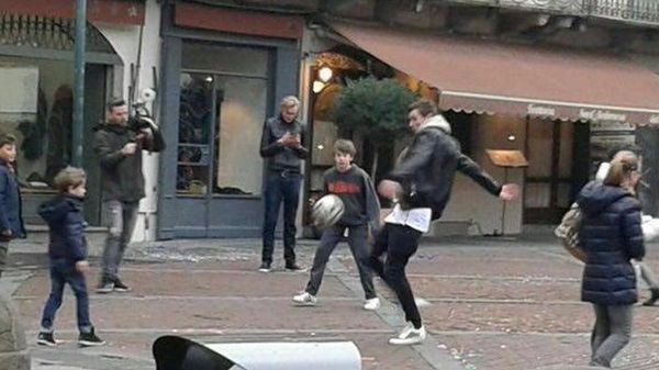 È lui? È de Roon quello lì che passeggia in piazza Vecchia? Sì, è lui. E i bambini che lo hanno notato probabilmente non hanno potuto resistere: «Fai due tiri con noi?».