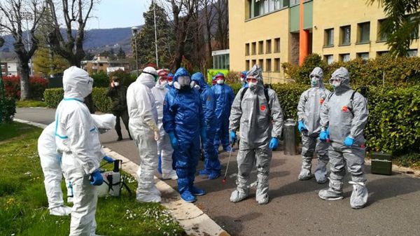 Due squadre speciali, una dell’Esercito Russo ed una dell’Esercito Italiano stanno sanificando la casa di riposo Martino Zanchi ad Alzano.