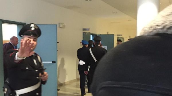 Il figlio è stato fatto entrare da un ingresso laterale e si è seduto accanto alla madre Ester.