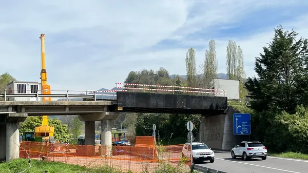 VALLE SERIANA. Nella notte tra sabato e domenica 7 aprile la posa del cavalcavia sovrastante la strada SS671: dopo tre anni luce in fondo al tunnel per la viabilità della zona.
