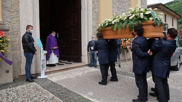 Zogno, l’addio di colleghi e amici al presidente degli ambulanti bergamaschi, morto in un tragico incidente stradale. Il curato: sulla tua moto ora ciascuno di noi e il nipotino che avresti voluto.