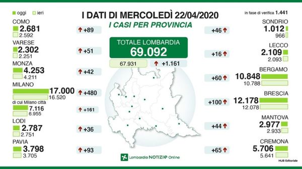 Nelle ultime 24 ore sono 18 i decessi nella Bergamasca. Il totale dei morti per coronavirus sul nostro territorio sono 2.892.
