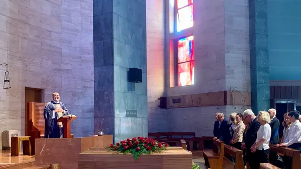 L’ADDIO. Accanto all’altare svetta lo stendardo della Provincia di Bergamo, di cui fu consigliere ma soprattutto presidente dal 1976 al 1980. Venerdì 9 agosto i funerali di Franco Fumagalli in città.