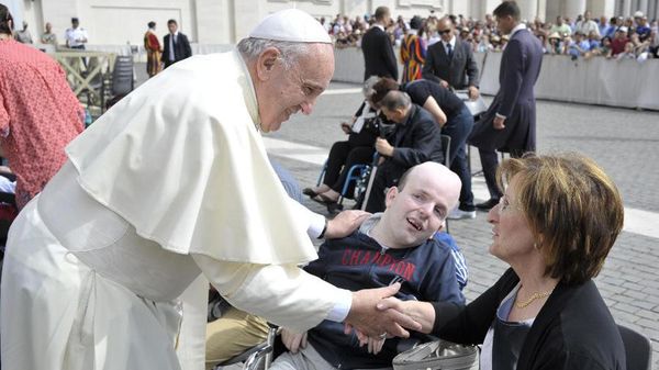 Un’emozione grandissima, che anche le immagini descrivono solo in minima parte. Luca Ongaro, 21 anni di Casnigo, costretto alla carrozzina da quando aveva dieci mesi per una grave patologia alle gambe, ha ricevuto un abbraccio caloroso quanto stupefacente: quello di Papa Francesco.