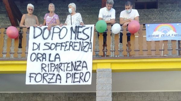 La festa all’architetto di 64 anni Pietro Pulcini ricoverato a fine febbraio e dimesso solo martedì 28 luglio. L’abbraccio con la mamma di 94 anni, che non ha preso nemmeno un raffreddore.