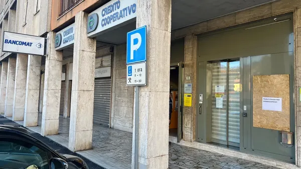 IL COLPO. Banda del botto in azione alla Bcc sotto il porticato di via Cesare Battisti.