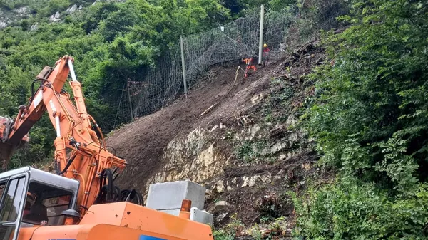 SEBINO. I lavori sono partiti lunedì 24 giugno con la rimozione dei detriti. Dopo il sopralluogo del geologo dell’Anas strada riaperta alle 18.30 di lunedì 24 giugno.