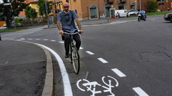 Piazzale Marconi, la struttura esterna della nuova velostazione è ormai praticamente completata: ora si dovranno realizzare gli impianti e le strutture per la posa e il ritiro delle biciclette. L’assessore alla Mobilità Zenoni: «Ad agosto in arrivo altre rastrelliere sul piazzale per 120 biciclette».