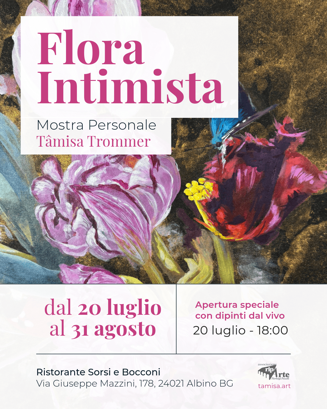 La mostra di Tâmisa Trommer si svolgerà dal 20 luglio al 31 agosto 2024 presso il Ristorante Sorsi e Bocconi.