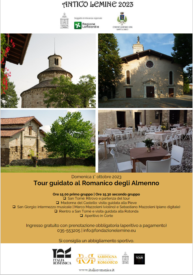 Evento: Tour «Il Romanico degli Almenno» - Domenica 1 ottobre ore 15 (primo gruppo) ore 15,30 (secondo gruppo).- Ritrovo e partenza del tour Madonna del Castello: visita guidata alla Pieve.