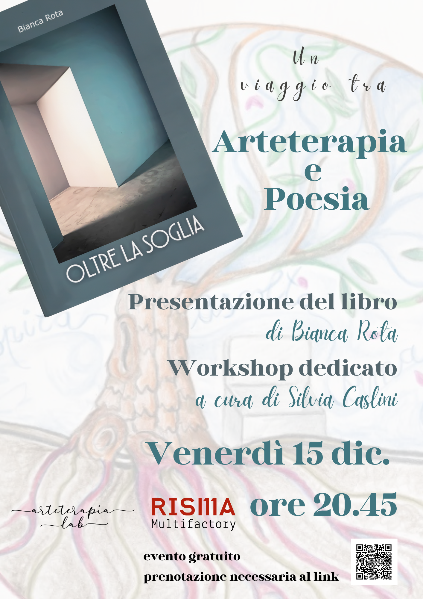 Sei pronto per un'esperienza unica? Il 15 dicembre 2023 alle 20:45, ti invitiamo a partecipare alla presentazione di "OLTRE LA SOGLIA: Un viaggio tra Arteterapia e Poesia" presso il meraviglioso spazio di Risma11 Multifactory.