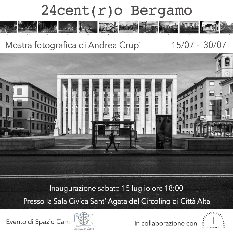 Tempo: percezione e rappresentazione della modalità di successione degli eventi e del rapporto fra essi come qualcosa di oggettivo. Da un punto di vista scientifico è una grandezza fisica fondamentale, ma è dal suo concetto qualitativo di percezione che trae ispirazione la mostra 24cent(r)o Bergamo, che presenta le fotografie di Andrea Crupi in un inedito dialogo con gli spazi della città di Bergamo.
