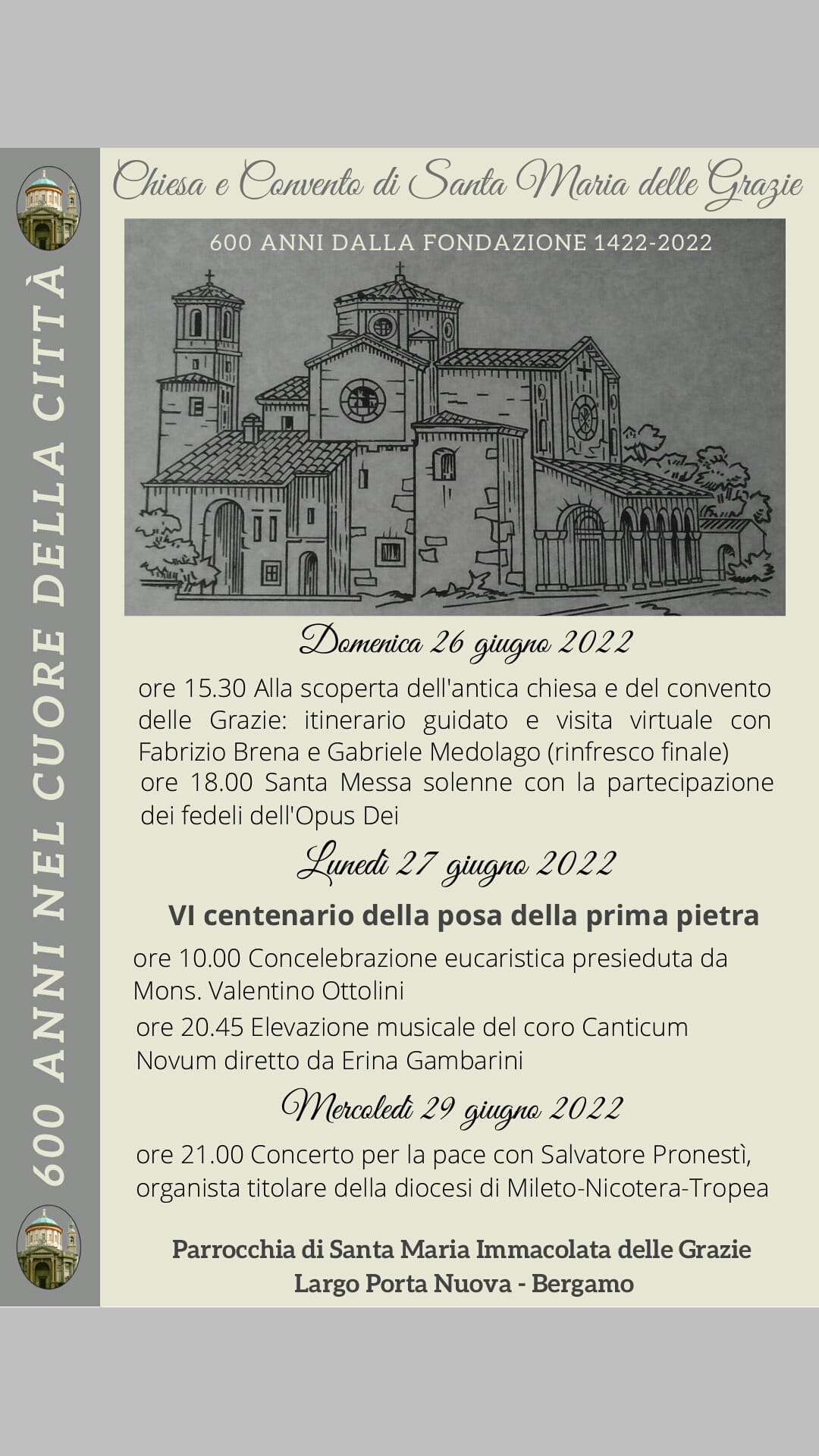1422 - 2022, 600 anni della Fondazione Chiesa e Convento di Santa Maria delle Grazie.