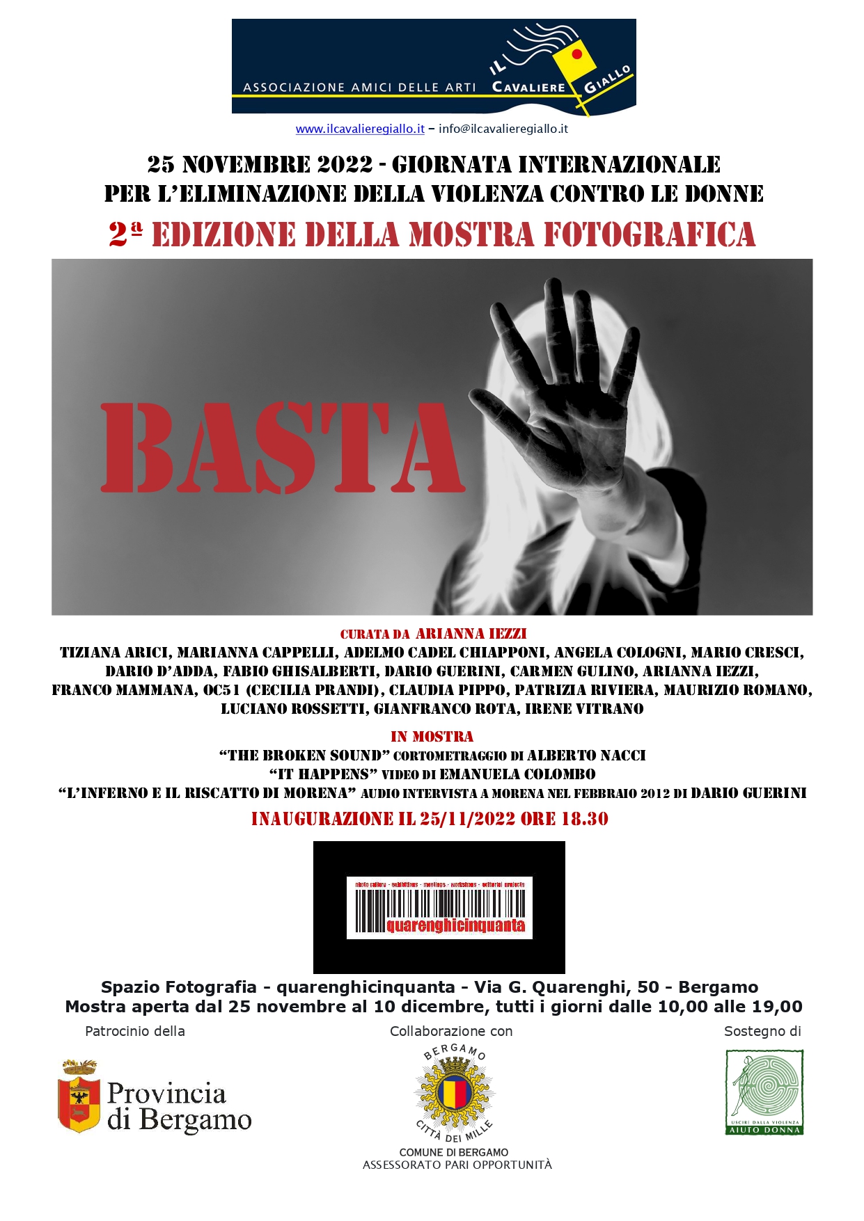 Spazio Fotografia Quarenghi 50 di Dario Guerini ospita la seconda edizione della mostra fotografica "Basta", inaugurata il 25 novembre, Giornata internazionale per l'eliminazione della violenza contro le donne, con la presenza delle autorità cittadine.