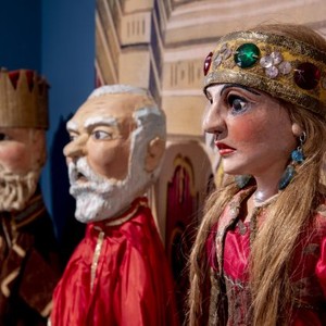 Burattini Aldrighi (Milano) - tecnica burattini a guanto - interpreta La Nascita di Maria di Vittore Carpaccio, Accademia Carrara sala 2.