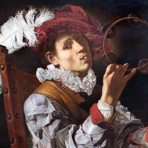 Del pittore conosciamo bene il volto anche grazie a Ritratto di giovane con colletto a lattuga, proveniente da Gallerie degli Uffizi – Palazzo Pitti di Firenze nel protagonista dell’Amore al fonte, da collezione privata, oltre che grazie ai due dipinti di Caravaggio presenti in mostra, per i quali, come si è detto, Cecco posò come modello. All’interno del percorso espositivo, di opera in opera, il linguaggio di Boneri si fa sempre più riconoscibile: nell’esecuzione tormentata dei panneggi, nei bianchi dall’intensità fosforescente, nella precisa definizione degli occhi e delle palpebre e nel nitido disegno delle labbra solcate da una spessa linea che le fa sembrare dischiuse, impegnate in un canto, un sospiro, un grido soffocato. Se la vita di Cecco è ancora avvolta nel mistero, non si può dire altrettanto, anche grazie a questo progetto curato da Gianni Papi e M. Cristina Rodeschini, delle influenze che il pittore ha ricevuto ed esercitato, queste ultime soprattutto sulla scena romana e napoletana dell’epoca (si ipotizza infatti che Boneri seguisse Caravaggio nella sua fuga a Napoli dopo l’omicidio di Ranuccio Tomassoni nel maggio 1606). Oltre a quella bergamasca, provincia in cui probabilmente nacque e forse fece ritorno a un certo punto della sua carriera. Considerato tra i grandi protagonisti della natura morta caravaggesca, insieme a Bartolomeo Cavarozzi e Antiveduto Gramatica, Cecco dovette influenzare anche la ricerca di Evaristo Baschenis (1617 – 1677). Il prete-pittore di origini bergamasche, ampiamente rappresentato nelle collezioni di Accademia Carrara, è certamente debitore della lezione magistrale del Boneri nel realismo dei brani di natura morta e nella resa degli strumenti musicali della serie dei Fabbricanti. In mostra, il confronto tra i due autori è favorito tramite un’opera in prestito e, all’interno del percorso permanente, nella sala dedicata a Baschenis.