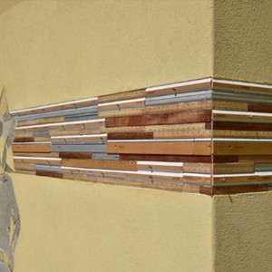 Disegnata e incastonata direttamente nella superficie muraria, l’opera "Polvere di Stelle" ritrae Anna e Ernesto Zambonelli, due figure che, unite dal sentimento e dal lavoro, sono riprese da lontano mentre guardano l’orizzonte. Una composizione basata su un piano cartesiano costruito attraverso centinaia di righelli che risalgono la superficie della corte per creare una misurazione che si muove tra memoria e futuro, passione e impresa, tra ricordi e immagini. Opera permanente di Andrea Mastrovito che apre al pubblico la corte segreta dell'hotel, "Polvere di Stelle" libera il ritratto dalla verosimiglianza dei volti che, trasformati in poliedri a stella, rimandano alla singolarità della vita come a quella delle stelle che, insieme, illuminano il cielo notturno.