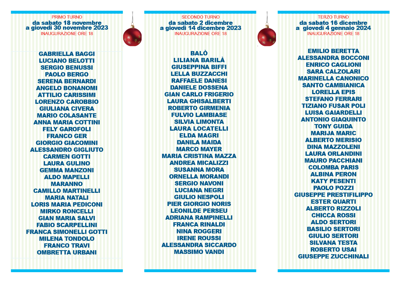 Sabato 18 novembre alle ore 18 la Galleria del Circolo Artistico Bergamasco sarà aperta al pubblico per l’inaugurazione della esposizione Collettiva di Natale con la partecipazione di: