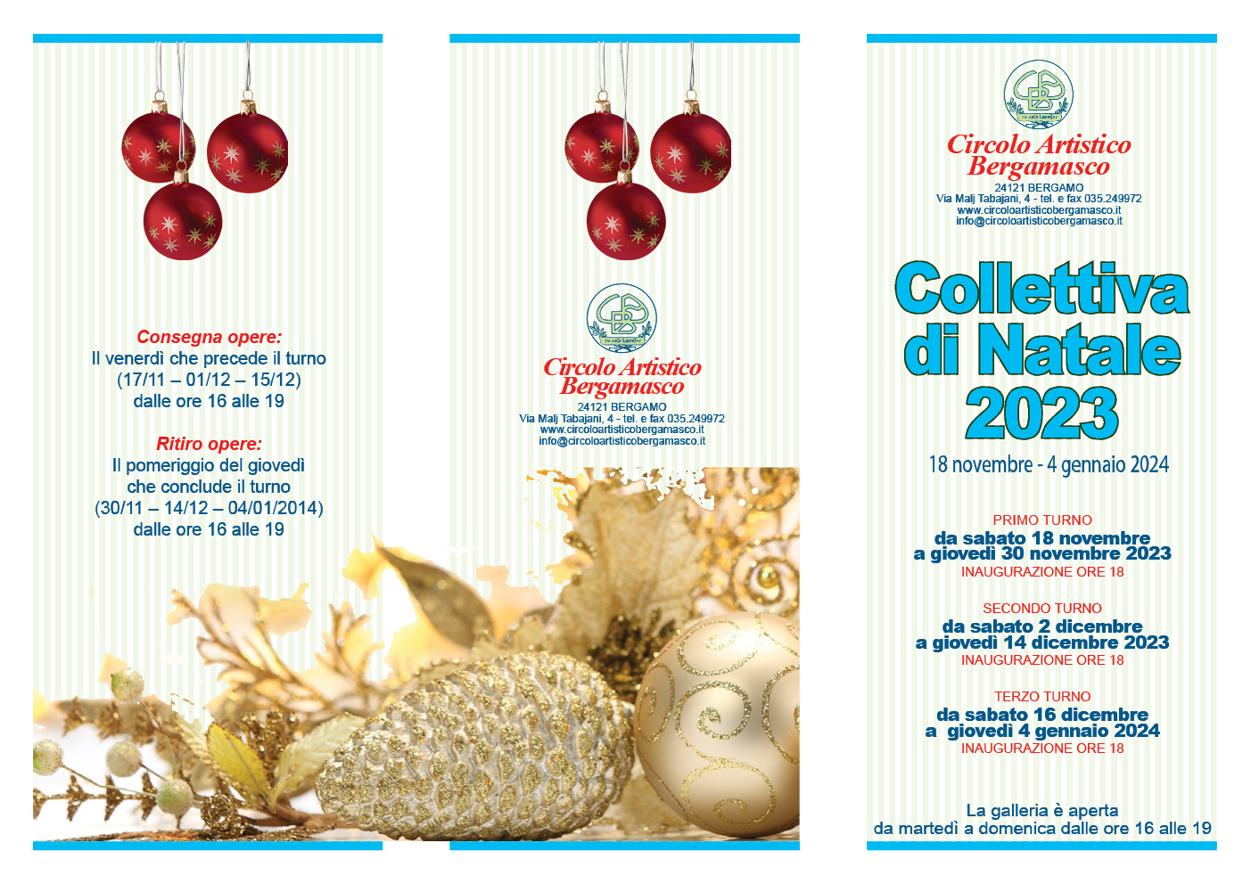 La Galleria del Circolo Artistico Bergamasco si apre al pubblico per l'esposizione della Collettiva di Natale con la partecipazione di numerosi artisti.