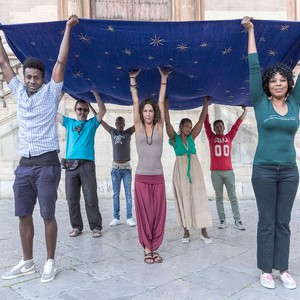 «Abissi» è il titolo dell’ultima performance realizzata nel 2018 dalla Zanetti a Palermo svoltasi in Piazza Magione e nelle piazze limitrofe del centro storico della città, lavoro poi esposto a Palazzo Savona per la curatela di Spazio Y all’interno del progetto «Border Crossing – Eventi Collaterali Manifesta 12», in collaborazione con il Centro Astalli Centro di Accoglienza. Una azione collettiva che ha coinvolto alcuni migranti, studenti, cittadini e visitatori della città di Palermo. Il progetto, che ha previsto un workshop e alcune azioni pubbliche, indaga il concetto di abisso e dell’immensamente profondo come metafora dell’impenetrabilità del destino umano, e vuole innescare una riflessione sulla drammatica questione dei migranti ed estenderla a tutto il viaggio dell’esistenza che compie ogni essere umano. Attraverso un processo creativo corale, sono state ricamate delle stelle su un unico tessuto. Riprendendo la forma delle stelle del Giotto (nella Cappella degli Scrovegni a Padova) i partecipanti, dialogando e raccontandosi, hanno ricamato le stelle a cui affidare memorie e proiettare desideri. Le persone hanno poi alzato il Tessuto dal basso verso l’alto e lo hanno ribaltato con una azione di trasformazione simbolica : il Blu degli Abissi del Mare è diventato quello di una Volta Stellata, sostenuta dalle persone che avevano attraversato la paura del non ritorno. L’artista ha utilizzato il Mare e il Cielo per evocare il senso di finitudine umana rispetto all’infinito e la nostra relazione con esso.