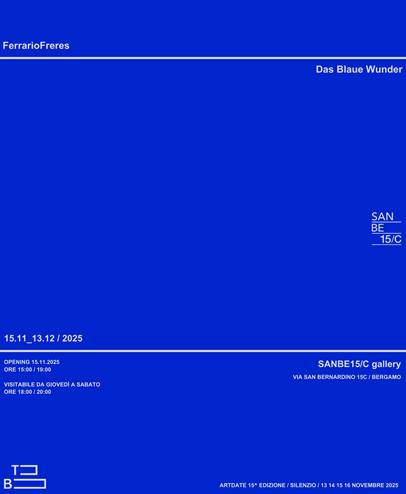 DAS BLAUE WUNDER si configura come un intervento ambientale che non si limita a occupare lo spazio, ma lo attraversa e lo mette in tensione, creando un varco simbolico tra interno ed esterno, tra il luogo espositivo e la città. Il lavoro nasce da un episodio emblematico della vita di Joseph Beuys — il ritorno all’Accademia di Düsseldorf compiuto a bordo di una canoa che attraversa il Reno — reinterpretato da FerrarioFreres come rito di passaggio e gesto di rinascita.