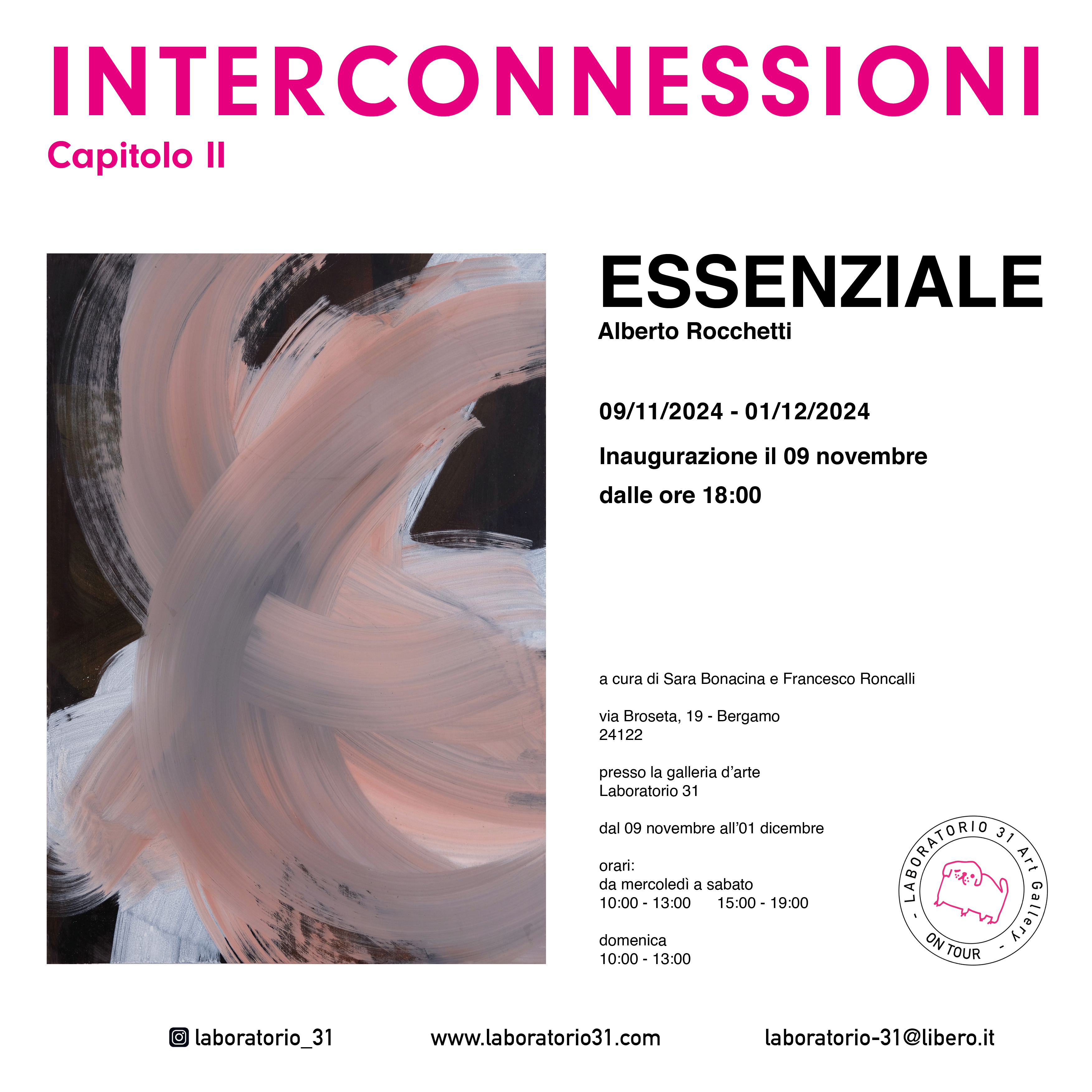 Laboratorio 31 Art Gallery è lieto di presentare la mostra Essenziale, che avrà luogo negli spazi della galleria, situata nel centro storico di Bergamo, in Via Broseta 19, dal 9 novembre al 1 dicembre, a cura di Sara Bonacina e Francesco Roncalli.
