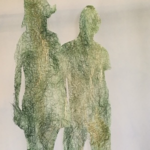 Presenze che la sua arte ha pensato, immaginato e plasmato per costruire un mondo fatto di trame lavorate partendo da pochi elementi: seta di recupero, lana, acqua e il sapiente lavoro delle sue mani per cercare, unire e definire strati, forme, curve, dettagli, simboli e poi, finalmente, sagome umane. Dense e consistenti in alcuni tratti, smarginate e eteree, fino a divenire impalpabili, nei bordi indefiniti, come a fondersi con lo spazio circostante.
