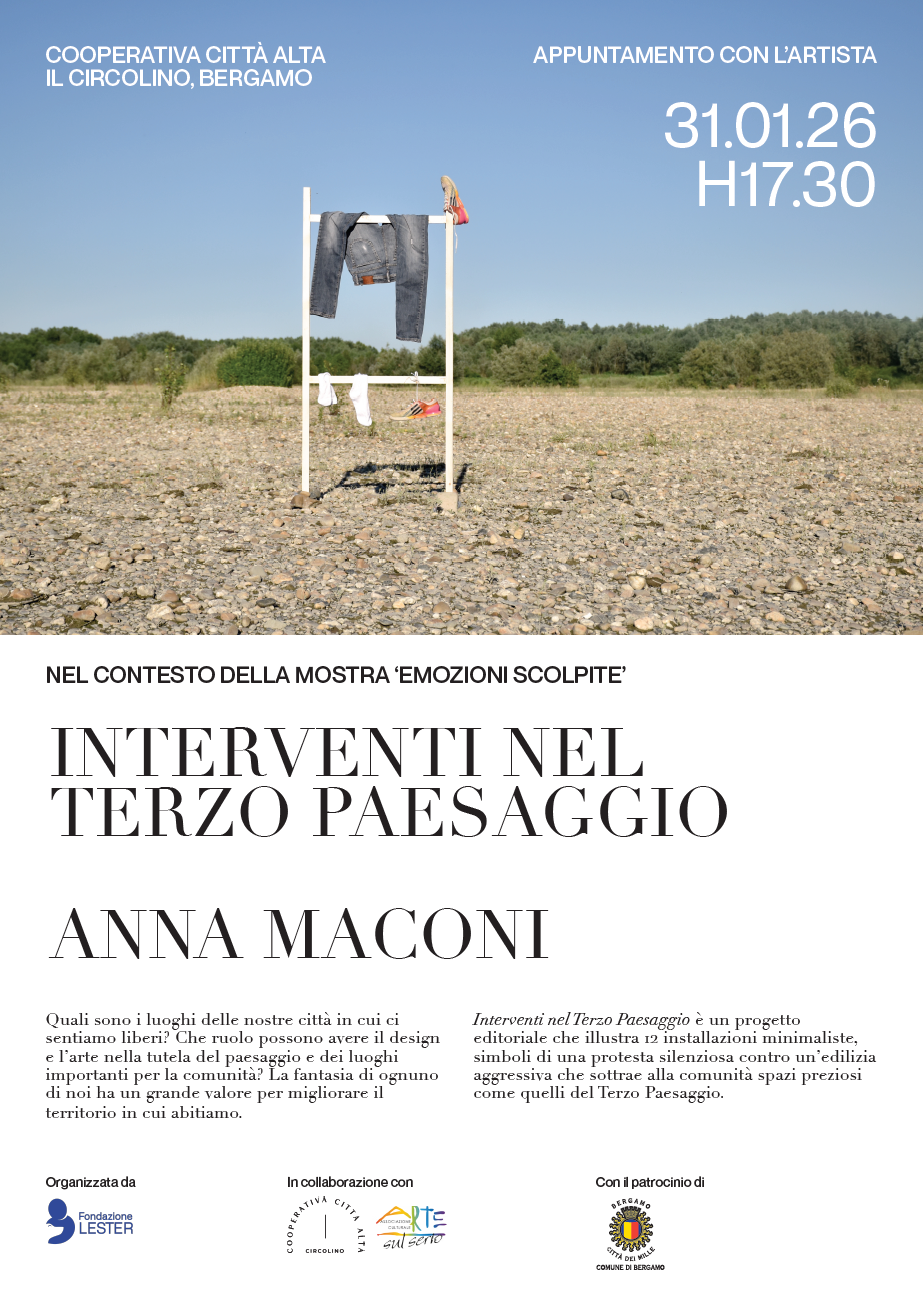 Nel contesto della mostra «Emozioni Scolpite», alla Sala Civica Sant'Agata in Città Alta, è in programma la presentazione del progetto editoriale di Anna Maconi, che illustra 12 installazioni minimaliste.