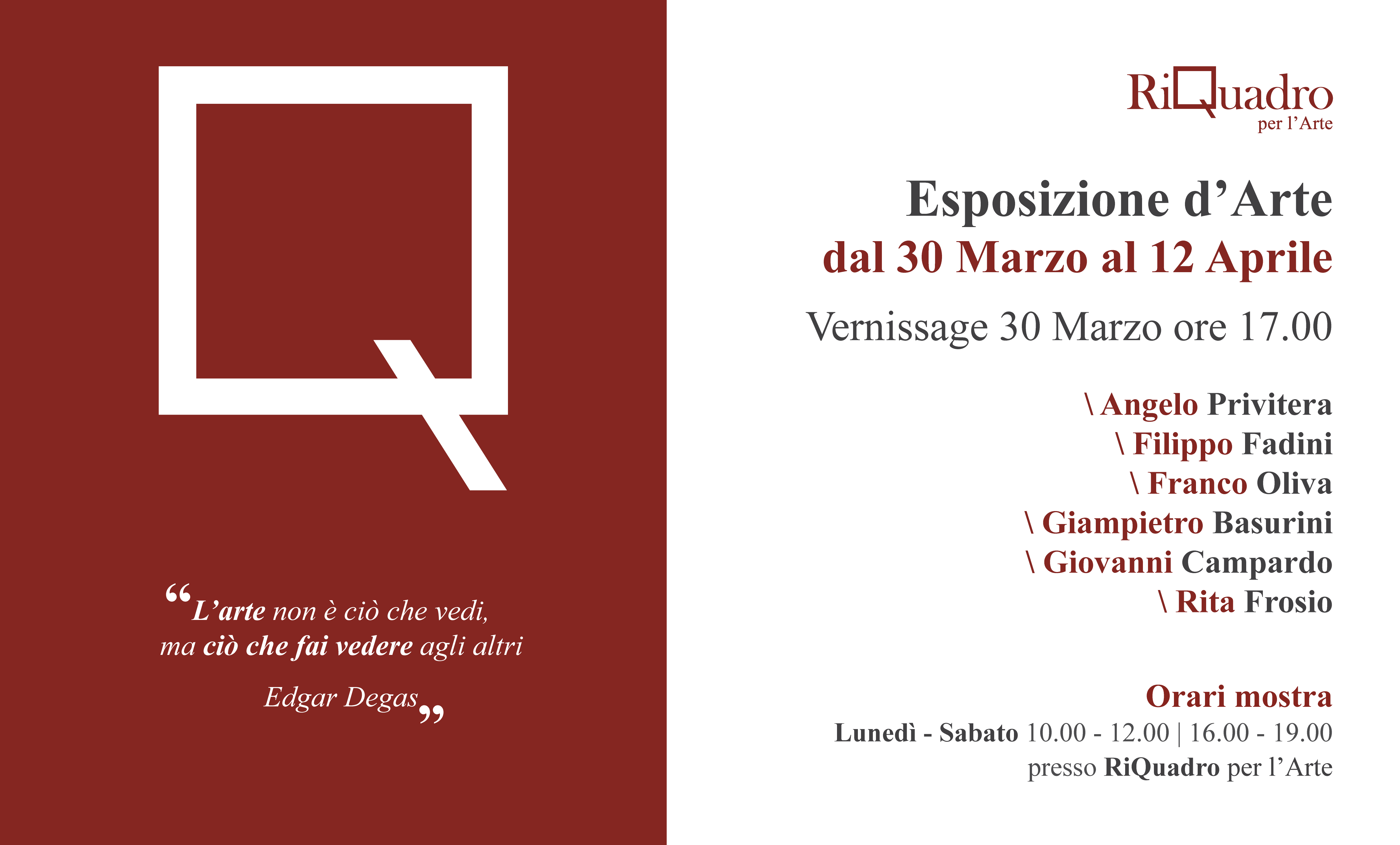 Al via all'Atelier Riquadro una mostra dedicata a sei differenti artisti bergamaschi.