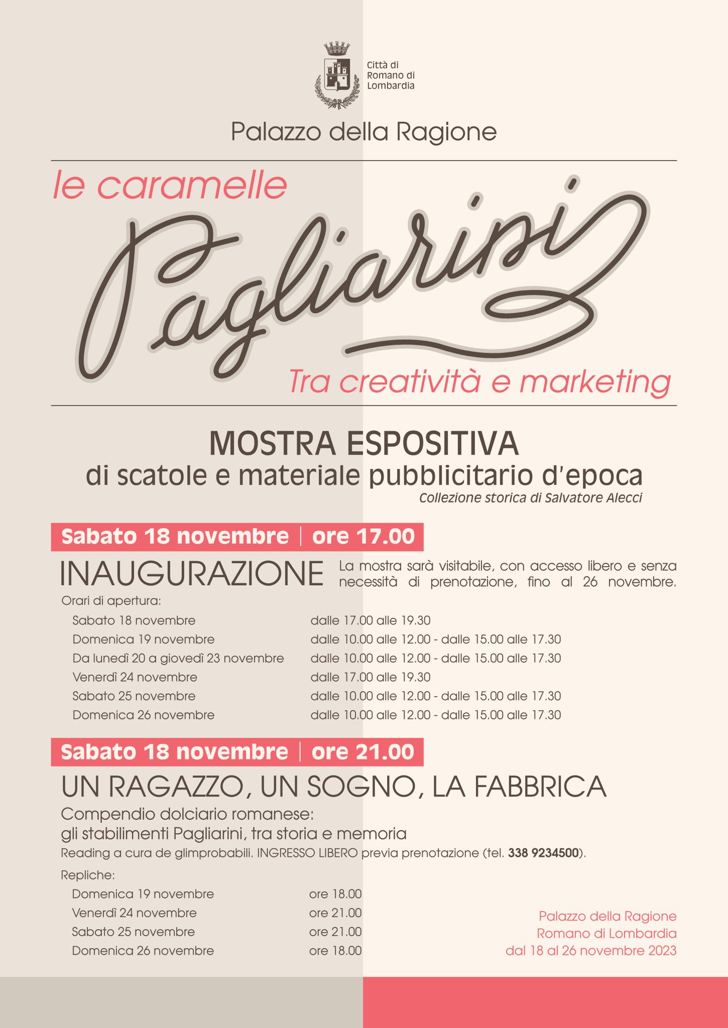 Mostra espositiva "Le caramelle Pagliarini. Tra creatività e marketing". Un'esposizione di scatole e materiale pubblicitario d’epoca, costudito nella collezione storica personale di Salvatore Alecci.