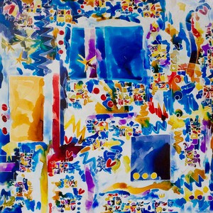 È una pittura capace di fondere senza gerarchie i registri lirico, giocoso, emotivo e che serba in sé una forte componente vitale di gestualità e di imprevisto. Il risultato, disarmante, sono spazi che ricordano in formato mini certe vetrate di chiese, affollati come sono di segni e insieme leggeri di fremiti e tocchi di luce. Una scrittura che ha radici antiche, di modelli e di studio, che il sogno dell’artista ha completamente trasformato ma senza mai eclissare del tutto.