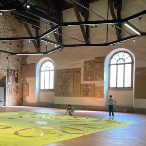 L’installazione unisce l’attenzione per i temi dell’ecologia, del ritualismo e della spiritualità, caratteristici della ricerca di Neto, a visioni e suggestioni suggerite dal confronto con le origini medievali del palazzo e con la sua storia centenaria.
