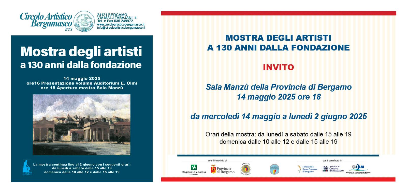 Una mostra imperdibile per celebrare 130 anni di arte, storia e innovazione del Circolo Artistico Bergamasco, con oltre novanta artisti e una panoramica unica sulla creatività bergamasca.