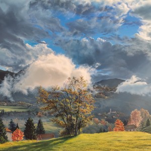 Questi cortocircuiti che rendono la scena quasi surreale sono come una chiave che permette di accedere al messaggio nascosto dietro ogni raffigurazione. L’artista infatti indaga il paesaggio con una precisione millimetrica e in questo modo indaga anche la natura dell’uomo, con i suoi dolori, le contraddizioni, la mutevolezza, la capacità di resilienza. Guardare oltre il realismo onirico di Paola e le sue atmosfere sospese significa guardare oltre gli accadimenti della vita quotidiana per scovarne il senso, il messaggio che l’Universo vuole dare a ciascuno di noi attraverso gli ostacoli che ci pone sul cammino. Ogni fatica è un’occasione per superare i propri limiti e accedere alla forza vitale che sta dentro di noi, simboleggiata dalle montagne, dall’acqua, dalla luce del sole...