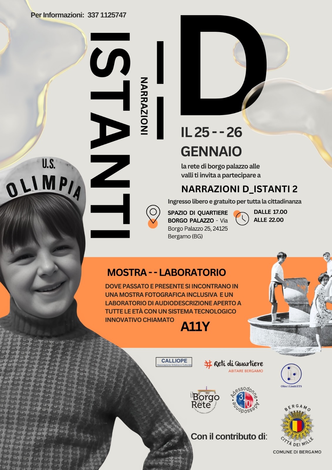 Sabato 25 e domenica 16 gennaio, dalle 17 alle 22, la Rete di Quartiere Borgo Palazzo alle Valli invita tutti ad una nuova edizione della mostra fotografica partecipata “Narrazioni D_Istanti 2”, che si terrà allo Spazio di Quartiere di Borgo Palazzo.